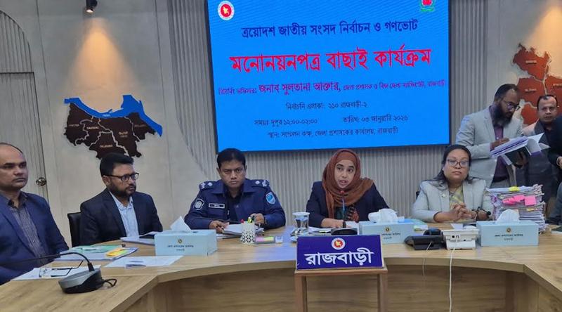 শনিবার (৩ জানুয়ারি) রিটার্নিং অফিসার ও জেলা প্রশাসকের সম্মেলন কক্ষে সকাল ১০টায় রাজবাড়ী-১ আসন ও দুপুর ১২টার রাজবাড়ী-২ আসনের মনোনয়ন পত্র যাচাই-বাছাই শেষে রিটার্নিং অফিসার ও জেলা প্রশাসক সুলতানা আক্তার এ ঘোষণা দেন।