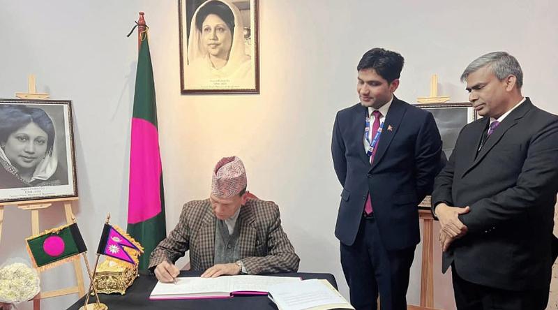 সাবেক প্রধানমন্ত্রী বেগম খালেদা জিয়ার মৃত্যুতে শোকবার্তা গ্রহণের তৃতীয় দিনে নেপালের বাংলাদেশ দূতাবাস পরিদর্শন করেছেন নেপালের পররাষ্ট্রমন্ত্রী বালা নন্দ শর্মা।