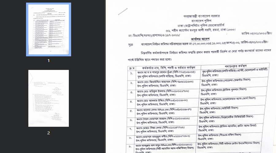 সোমবার (৫ জানুয়ারি ২০২৬) ডিএমপি কমিশনার শেখ মো. সাজ্জাত আলী, এনডিসি স্বাক্ষরিত এক আদেশে এই পদায়ন করা হয়।