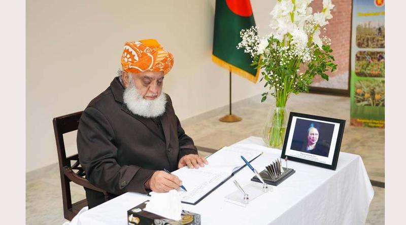 জমিয়তের মুখপাত্র আসলাম গোরি দলের অফিশিয়াল ফেসবুক পেজে জানিয়েছেন, মাওলানা ফজলুর রহমান বাংলাদেশ দূতাবাসে উপস্থিত হয়ে দেশটির সাবেক প্রধানমন্ত্রী ও বিএনপি চেয়ারপারসনের রুহের মাগফিরাত কামনা করে দোয়া ও সুরা ফাতেহা পাঠ করেছেন।