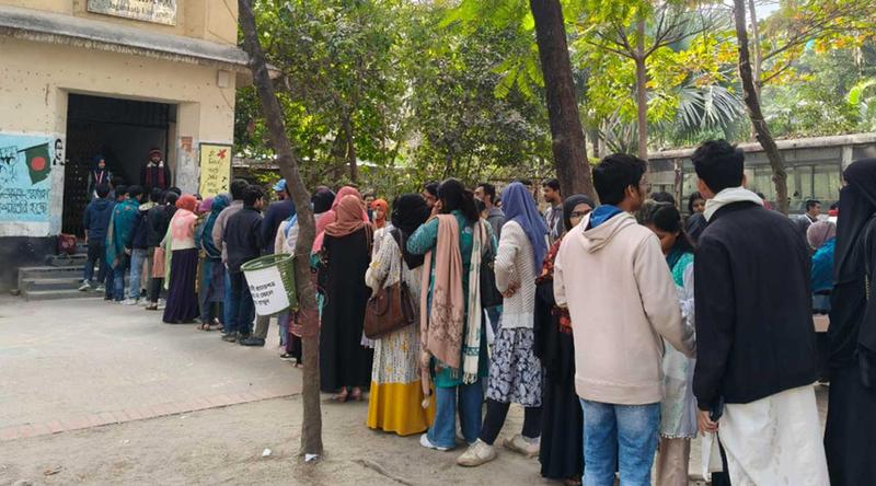 সমাজবিজ্ঞান বিভাগের শিক্ষার্থী ফাতেমা আক্তার বলেন, সকাল থেকে প্রচণ্ড শীত থাকায় আসতে দেরি হয়েছে। ভোটের পরিবেশ অনেক ভালো। সবাই উৎসবমুখর পরিবেশে ভোট দিতে পারছে।