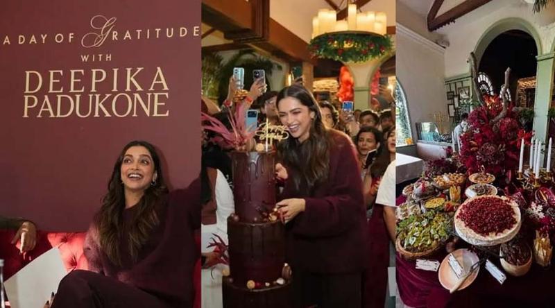 ইন্দো-ওয়েস্টার্ন থিমে সাজানো মেন্যুতে ছিল ককটেল থেকে শুরু করে দক্ষিণী, মোগলাই ও উত্তর ভারতীয় নানা পদ। অনুরাগীদের ঘিরেই কাটা হয় বিশাল ত্রিস্তরীয় চকোলেট কেক। বার্গেন্ডি রংয়ের ওই কেকের সঙ্গে মিলিয়ে নিজেও একই রংয়ের পোশাক পরেছিলেন দীপিকা।