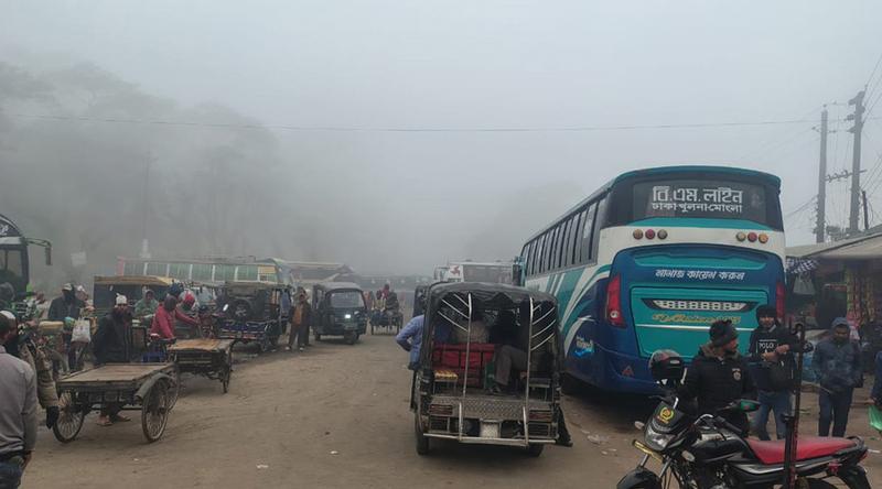 ঘন কুয়াশায় নদী ঢেকে যাওয়ায় দৃষ্টিসীমা প্রায় শূন্যের কোঠায়। এমন পরিস্থিতিতেও শতশত কর্মজীবী মানুষ জীবিকার তাগিদে ঝুঁকি নিয়ে খেয়া পারাপার হচ্ছে। কুয়াশার প্রভাবে মোংলা বন্দরে অবস্থানরত বিদেশি বাণিজ্যিক জাহাজের পণ্য খালাস ও পরিবহণ কার্যক্রম ব্যাহত হচ্ছে। সম্ভাব্য দুর্ঘটনা এড়াতে বড় নৌযান চলাচল সাময়িকভাবে বন্ধ রাখা হয়েছে।