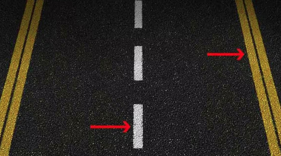 ভাঙা সাদা দাগ: এখানে লেন পাল্টানো যায়, তবে কেবল তখনই যদি তা নিরাপদ মনে হয়। সতর্কতা অপরিহার্য।