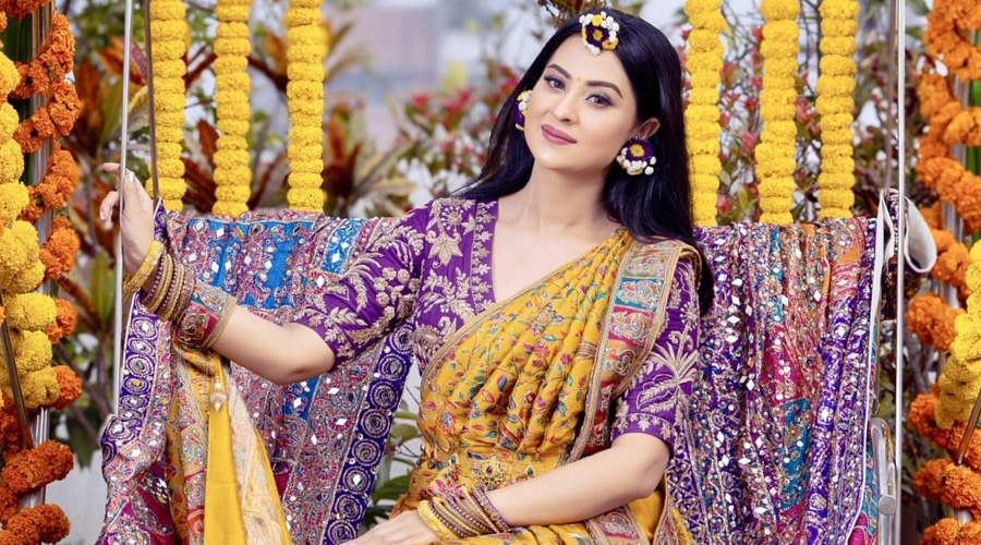 হলুদের সাজে নজর কাড়লেন অভিনেত্রী বুবলী
