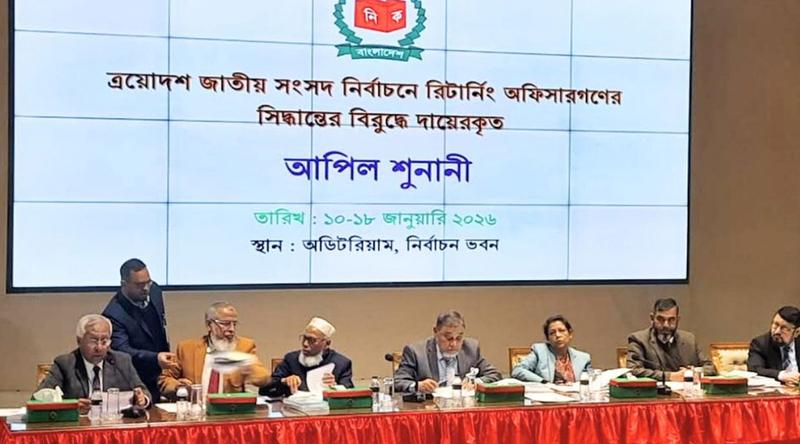 নির্বাচন কমিশনে (ইসি) শুরু হয়েছে ত্রয়োদশ জাতীয় সংসদ নির্বাচনে মনোনয়নপত্র বাছাইয়ে রিটার্নিং কর্মকর্তাদের সিদ্ধান্তের বিরুদ্ধে করা আপিলের শুনানি।