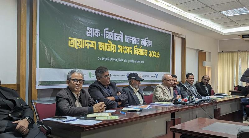 শফিউল আলম আরও বলেন, জরিপের ফলাফল অনুযায়ী আসন্ন নির্বাচনে ভোটারদের একটি বিশাল অংশ প্রাতিষ্ঠানিক সংস্কার, দুর্নীতি দমন এবং জুলাই অভ্যুত্থানের ন্যায়বিচার নিশ্চিত করার দাবি জানাচ্ছে।