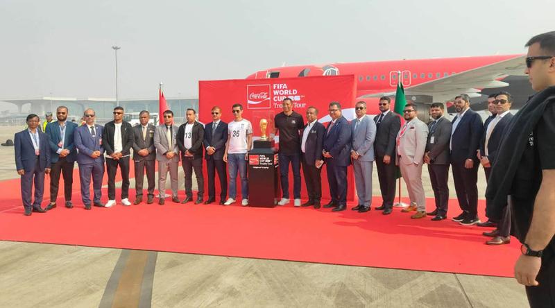 বিশ্ব ভ্রমণের অংশ হিসেবে ঢাকায় পৌঁছেছে ফিফা বিশ্বকাপ ট্রফি।