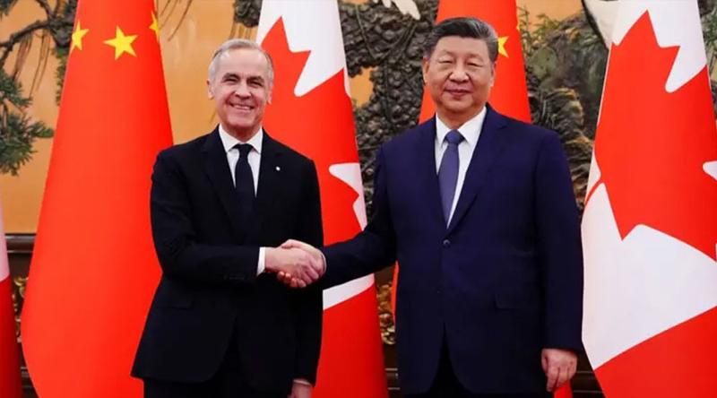 কানাডার প্রধানমন্ত্রী মার্ক কার্নি বাণিজ্য চুক্তি নিয়ে আলোচনার লক্ষ্যে চীনের রাজধানী বেইজিংয়ে চীনা প্রেসিডেন্ট শি চিনপিংয়ের সঙ্গে বৈঠক করছেন। কানাডার প্রধানমন্ত্রী মার্ক কার্নি এবং চীনের রাষ্ট্রপতি শি চিনপিং বেইজিংয়ের গ্রেট হল অব দ্য পিপলে একে অপরকে শুভেচ্ছা জানিয়েছেন।