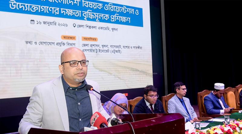 শুক্রবার (১৬ জানুয়ারি) সকালে খুলনা জেলা শিল্পকলা একাডেমি অডিটরিয়ামে ‘নাগরিক সেবা বাংলাদেশ’ বিষয়ক ওরিয়েন্টেশন ও উদ্যোক্তাদের দক্ষতা বৃদ্ধিমূলক প্রশিক্ষণে প্রধান অতিথির বক্তৃতায় তিনি এসব কথা বলেন।