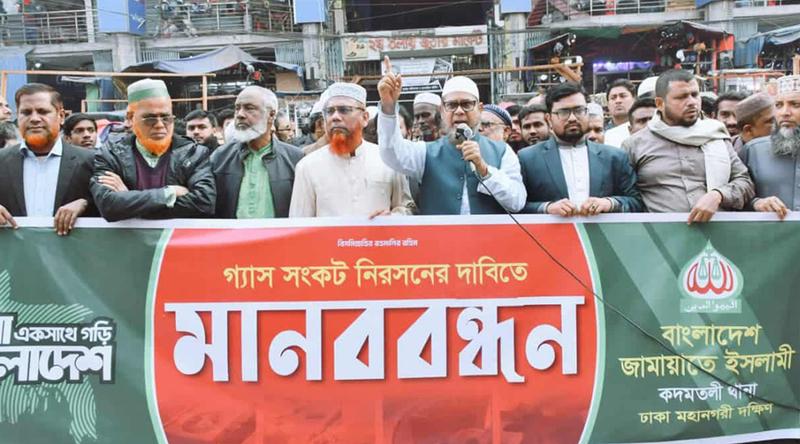 মানববন্ধনে মহানগরী দক্ষিণ জামায়াতের কর্মপরিষদ সদস্য সৈয়দ জয়নুল আবেদীন বলেন, সারা দেশে যেই গ্যাসের সংকট দেখা দিয়েছে এটি কৃত্রিম সংকট। অসাধু ব্যবসায়ীদের সিন্ডিকেটের কারণে মানুষ এলপি গ্যাস পাচ্ছে না। সরকারের ভেতরে ও বাহিরে আওয়ামী দোসরদের কারণে সরকার অসাধু ব্যবসায়ীদের বিরুদ্ধে কঠোর ব্যবস্থাও নিতে পারছে না।