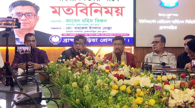 শুক্রবার (১৬ জানুয়ারি) বিকেলে ব্রাহ্মণবাড়িয়া প্রেসক্লাব মিলনায়তনে আয়োজিত এক মতবিনিময় সভায় সাংবাদিকদের সঙ্গে তিনি এসব কথা বলেন। এ সময় ব্রাহ্মণবাড়িয়া প্রেসক্লাবের সভাপতি জাবেদ রহিম বিজনের সভাপতিত্বে স্বাগত বক্তব্য দেন সাধারণ সম্পাদক বাহারুল ইসলাম মোল্লা।