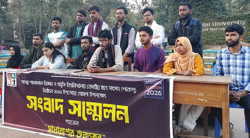শাহজালাল বিজ্ঞান ও প্রযুক্তি বিশ্ববিদ্যালয় কেন্দ্রীয় ছাত্রসংসদ (শাকসু) নির্বাচনে স্বতন্ত্র প্রার্থীদের নিয়ে গঠিত ‘সাধারণের ঐক্যস্বর’ প্যানেলের ইশতেহার ঘোষণা করা হয়েছে। ইশতেহারে ৯টি দফা অন্তর্ভুক্ত করা হয়েছে।