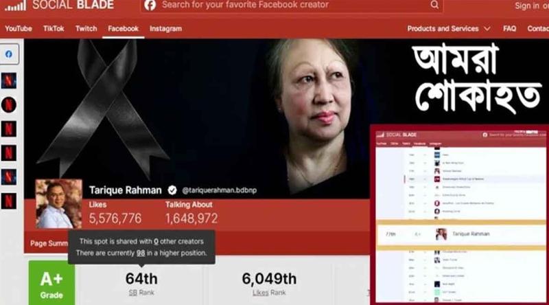 ওয়েবসাইটটির টপ হান্ড্রেড ফেসবুক ক্রিয়টার্স বাই সোশ্যালে বিএনপির চেয়ারম্যান তারেক রহমানের অবস্থান ৬৪ নম্বরে। ফেসবুক পোস্টের সংখ্যার ভিত্তিতে, তিনি ডোনাল্ড ট্রাম্পের চেয়েও উপরে।