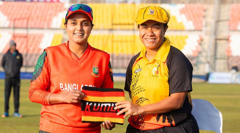 লক্ষ্যে নেমে নিউগিনি ৩.১ ওভারে ৩২ রান তুলে বাংলাদেশকে চ্যালেঞ্জ ছুড়েছিল। পরপর দুই ওভারে সাত বলের মধ্যে দুটি উইকেট হারিয়ে ধাক্কা খায় তারা। ব্রেন্ডা তাউ ও সিবোনা জিমি ফের দাঁড়িয়ে যান। এই জুটিতে ৫৪ রান তোলে নিউগিনি।