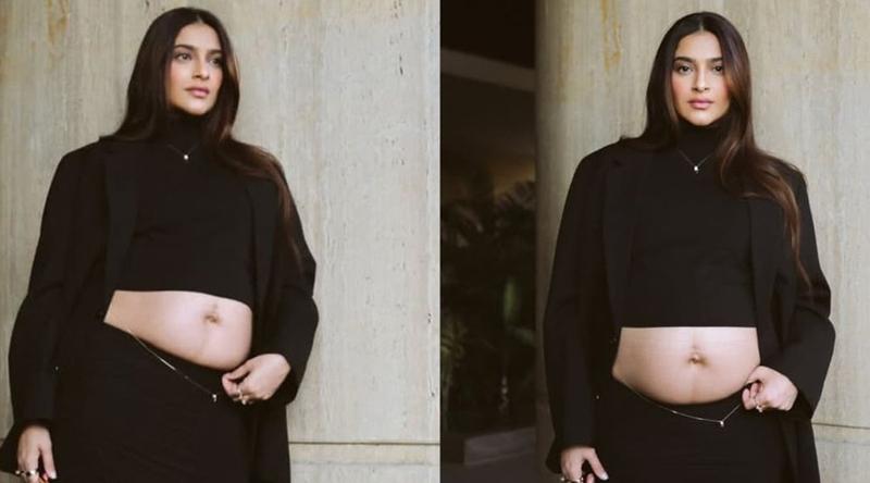 অন্তঃসত্ত্বা মানেই ঢিলেঢালা পোশাক-এই প্রচলিত ধারণা ভেঙে বডি-ফিটেড কালো পোশাকে নিজের বেবিবাম্প গর্বের সঙ্গে তুলে ধরলেন সোনম।