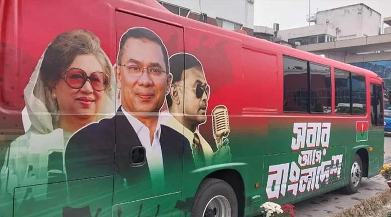 সিলেটে লাল-সবুজের বাসে নির্বাচনী প্রচারণায় অংশ নেবেন তারেক রহমান