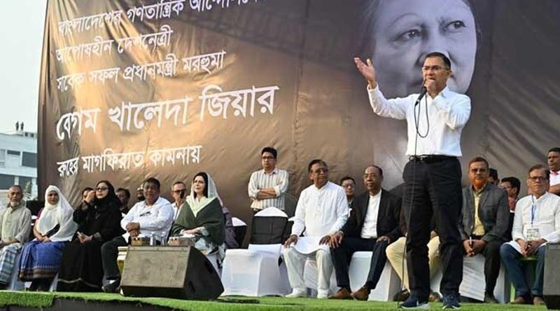 মঙ্গলবার (২০ জানুয়ারি) রাজধানীর বনানী চেয়ারম্যানবাড়ি মাঠে সাবেক প্রধানমন্ত্রী বেগম খালেদা জিয়ার রুহের মাগফেরাত কামনায় বনানী সোসাইটি আয়োজিত দোয়া মাহফিল ও মতবিনিময় সভায় এসব কথা বলেন তারেক রহমান। এ সময় তার সঙ্গে উপস্থিত ছিলেন সহধর্মিণী ডা. জুবাইদা রহমান।