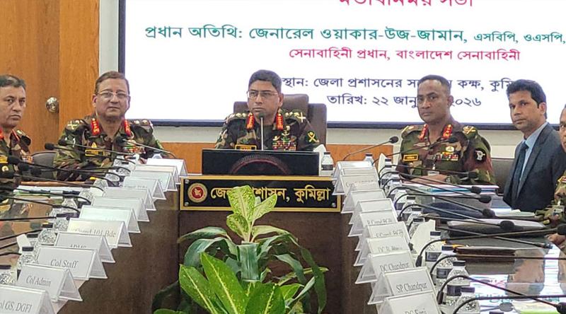 সেনাপ্রধান কুমিল্লা জেলা প্রশাসনের সম্মেলনকক্ষে ঊর্ধ্বতন সামরিক কর্মকর্তা, বিভিন্ন জেলার আইন-শৃঙ্খলা রক্ষা বাহিনী ও অসামরিক প্রশাসনের কর্মকর্তাদের সঙ্গে মতবিনিময় করেন।