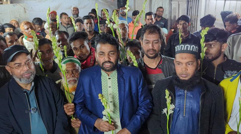 এ সময় তারা ফুলের তোড়া দিয়ে বিএনপির প্রার্থীকে শুভেচ্ছা জানান। পরে বিএনপি প্রার্থীও তাদেরকে ফুল দিয়ে বরণ করে নেন এবং শুভেচ্ছা জানান।