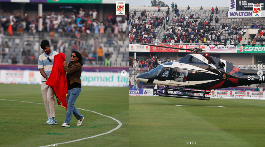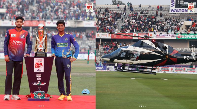 হেলিকপ্টারে করে মাঠে এলো বিপিএলের ট্রফি