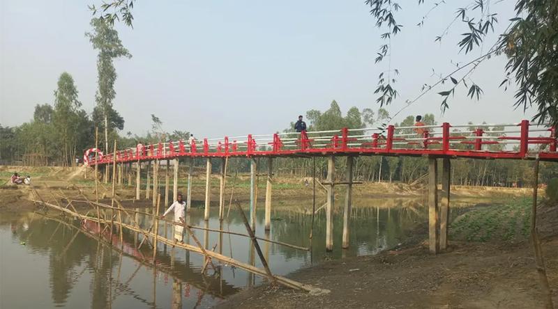 জানা গেছে, দীর্ঘদিন যাদের নদী পারাপারে একমাত্র ভরসা ছিল নৌকা। নদীর উপর দুটি বাঁশ আড়াআড়ি করে বসিয়ে জীবনের ঝুঁকি নিয়ে কোমলমতি শিশু শিক্ষার্থীসহ সব বয়সী মানুষ নদী পার হতো। কৃষকরা তাদের উৎপাদিত ফসল পারাপারে পড়তেন বিড়ম্বনায়। গ্রামবাসীদের এই দুর্ভোগের কথা ভেবে সেতু নির্মাণের উদ্যোগ নেয় স্থানীয় যুবদল। পরে তারা নিজেদের মধ্যে অর্থ সংগ্রহ করেন এবং শ্রম দিয়ে বাঁশ, কাঠ ও সিমেন্টের পিলার দিয়ে প্রায় ৬ লাখ টাকা ব্যয়ে ওই সেতুটি নির্মাণ করেন। সেতুটি ইউনিয়নের কয়েক গ্রাম মিলে প্রায় ১৫ হাজার মানুষের যাতায়াতের ভোগান্তি দূর করেছে।