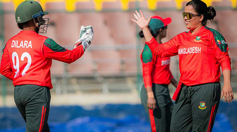 বাংলাদেশের হয়ে ২টি করে উইকেট শিকার করেন স্বর্ণা আক্তার। ১ উইকেট নেন রাবেয়া খান।