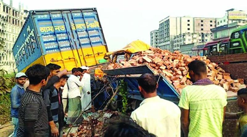 প্রত্যক্ষদর্শীরা জানায়, ঢাকা-চট্টগ্রাম মহাসড়কের উত্তর পাশে মক্কা মদিনা কার্গো সার্ভিস (ঢাকা মেট্রো-ট-২২-৩০৮৭) নামের একটি কাভার্ডভ্যান চাকায় হাওয়া দিচ্ছিল। এসময় এন এস বিল্ডার্সের একটি ইটবাহী মিনি ট্রাক (ঢাকা মেট্রো-ড-১৪-৫৬৯৯) দ্রুতগতিতে এসে কাভার্ডভ্যানটিকে পেছন থেকে ধাক্কা দেয়। এতে কাভার্ডভ্যানটি মহাড়কের ঢালে গিয়ে আটকে যায়। ইটবাহী ট্রাকটির সামনের অংশ দুমড়ে-মুচড়ে যায়।
