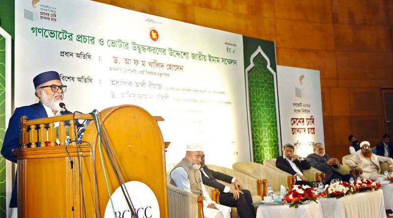 রোববার (২৫ জানুয়ারি) দুপুরে রাজধানীর আগারগাঁওয়ে বাংলাদেশ চীন মৈত্রী সম্মেলন কেন্দ্রে গণভোটের প্রচার ও ভোটার উদ্বুদ্ধকরণের উদ্দেশে আয়োজিত জাতীয় ইমাম সম্মেলনে প্রধান অতিথির বক্তব্যে তিনি এসব কথা বলেন।