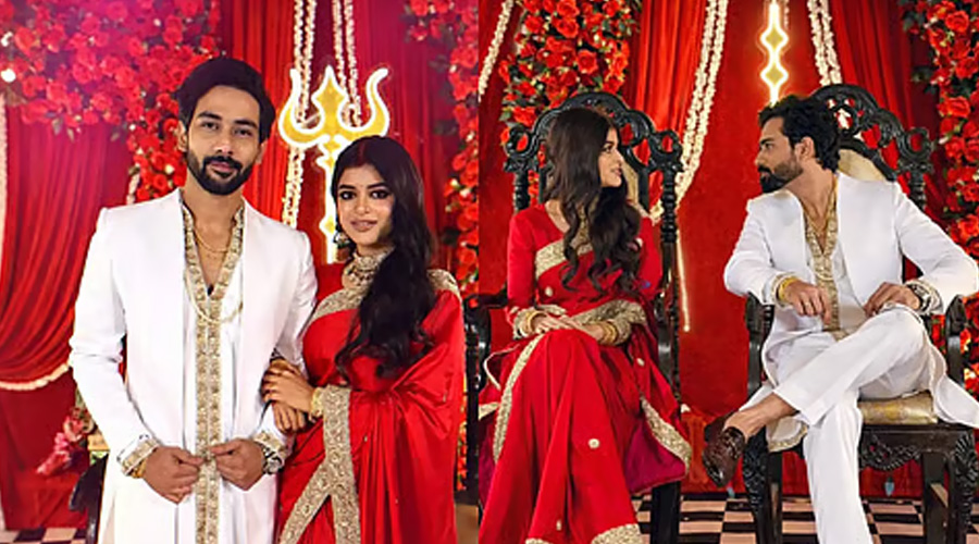 অন্যদিকে দেবমাল্য বেছে নিয়েছেন কারুকার্য করা কালো মখমলি পাঞ্জাবি ও সাদা ধুতি। দু’জনের পোশাকের কনট্রাস্টে সাবেকি ও আধুনিকতার এক নিখুঁত মেলবন্ধন তৈরি হয়েছে। জাঁকজমকের বদলে এই বউভাতের আয়োজন ছিল ঘরোয়া আভিজাত্যে ভরপুর। ইটের দেওয়াল আর রুচিশীল অন্দরসজ্জার পটভূমিতে প্রতিটি ছবি যেন যত্ন করে সাজানো এক একটি গল্প।