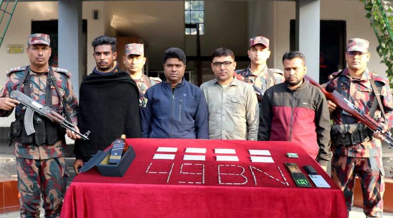যশোরে বিদেশি মদ ও ১০ কেজি রুপাসহ আটক ৪
