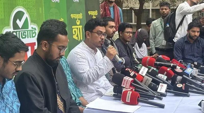 বুধবার (২৮ জানুয়ারি) দুপুর আড়াইটায় ডাকসু প্রাঙ্গণে আয়োজিত সংবাদ সম্মেলনে তিনি এসব কথা বলেন। নির্বাচিত পাঁচ ছাত্র সংসদের সম্মিলিতভাবে গণভোটে ‘হ্যাঁ’র পক্ষে ক্যাম্পেইন পরিচালনার কর্মসূচি ঘোষণা প্রসঙ্গে এ সংবাদ সম্মেলনের আয়োজন করা হয়।