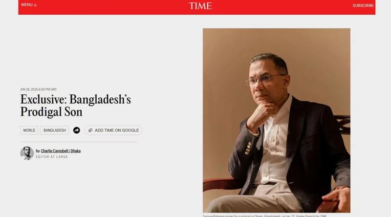 তারেক রহমানের সাক্ষাৎকারের আলোকে টাইমের প্রতিবেদনে বলা হয়েছে, তিনি দেশে ফেরার পরপরই সামনে এসেছে বড় রাজনৈতিক বাস্তবতা। আগামী ১২ ফেব্রুয়ারির জাতীয় নির্বাচনে তাঁর নেতৃত্বাধীন বিএনপিকে এগিয়ে রাখা হচ্ছে। সাম্প্রতিক জরিপে দলটির সমর্থন দেখা গেছে প্রায় ৭০ শতাংশ। শেখ হাসিনার নেতৃত্বাধীন আওয়ামী লীগ ছাত্র-জনতার অভ্যুত্থানে ক্ষমতাচ্যুত হওয়ার পর এই নির্বাচন অনুষ্ঠিত হচ্ছে। সেই অভ্যুত্থানে প্রাণ গেছে প্রায় দেড় হাজার মানুষের।