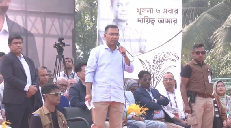 খুলনার জনসভায় বক্তব্য রাখছেন তারেক রহমান