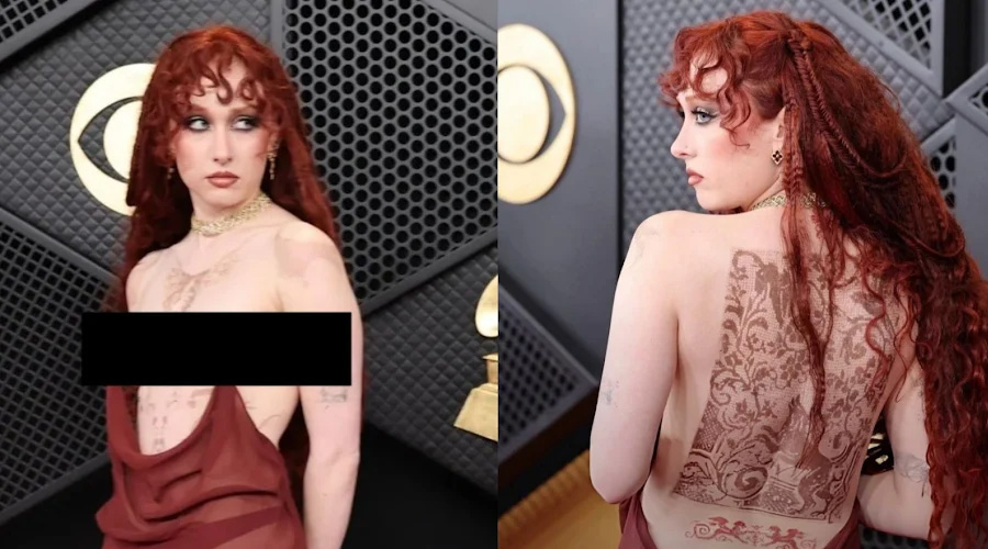 প্রায় নগ্ন পোশাকে গ্র্যামির রেড কার্পেটে গায়িকা চ্যাপেল রোয়ান