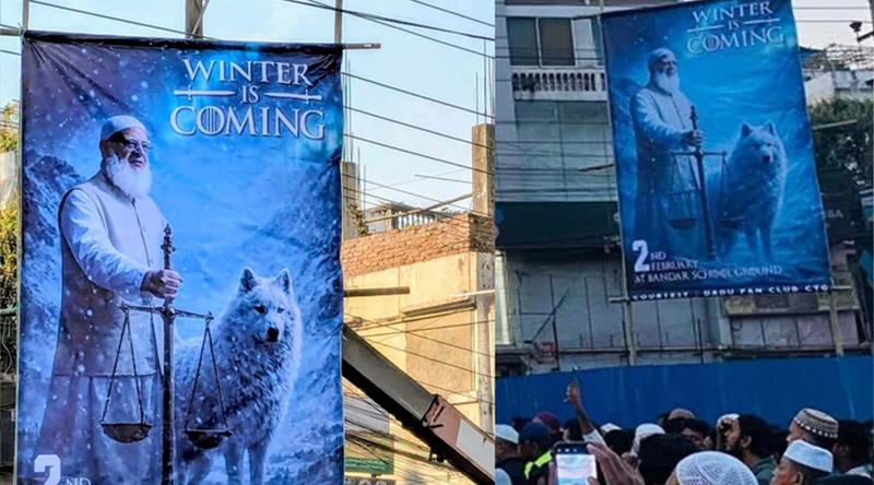 চট্টগ্রামে ‘গেম অব থ্রোনস’ সিরিজের আদলে জামায়াত আমিরের ব্যানার