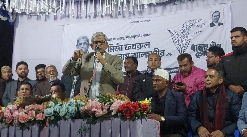 মির্জা ফখরুল আক্ষেপ করে বলেন, বিগত সরকার আমাদের সন্তানদের ওপর অনেক জুলুম করেছে। আমাদের ছেলে-মেয়েরা লিখিত ও মৌখিক পরীক্ষায় উত্তীর্ণ হওয়ার পর যখন পুলিশি তদন্ত (ভেরিফিকেশন) হতো এবং দেখা যেত প্রার্থীর বাড়ি ঠাকুরগাঁওয়ে কিংবা সে বিএনপি মহাসচিবের এলাকার মানুষ, তখন তার চাকরি আর হতো না। বিগত সময়ে এটাই ছিল বাস্তবতা। কিন্তু আমরা তেমনটি করব না; মেধার ভিত্তিতে নিয়োগ নিশ্চিত করব। যদি সুন্দর ভবিষ্যৎ গড়তে চান, তবে ধানের শীষে ভোট দিয়ে আমাদের কাজ করার সুযোগ দিন। আমরা হিন্দু, মুসলমান, বৌদ্ধ ও খ্রিস্টান— সকলে মিলেমিশে কাজ করতে চাই।