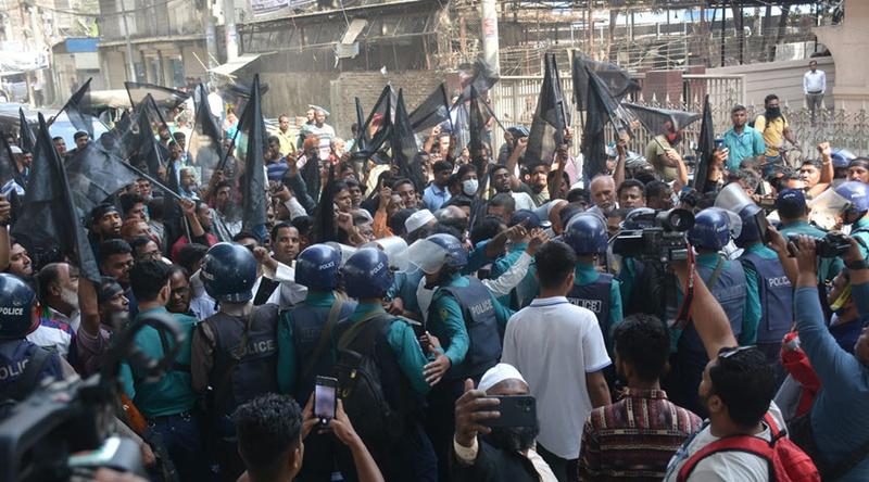 এর আগে, সকালে বন্দর শ্রমিকদের আন্দোলনের প্রতি সংহতি জানিয়ে চট্টগ্রামের আগ্রাবাদ এলাকায় অবরোধ কর্মসূচি পালন করা হয়। এ সময় শ্রমিক-কর্মচারী ঐক্য পরিষদের ব্যানারে বিক্ষোভ মিছিল অনুষ্ঠিত হয়। সংক্ষিপ্ত সমাবেশ শেষে মিছিলটি বন্দর অভিমুখে অগ্রসর হলে পুলিশ বাধা দেয়।