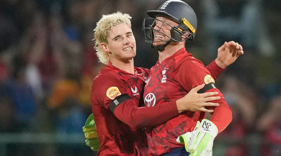 এর আগে ব্যাট করতে নেমে শুরুতেই ধাক্কা খায় ইংল্যান্ড। প্রথম ওভারেই বেন ডাকেটকে ফিরিয়ে দেন দুশমন্ত চামিরা। একে একে বেথেল, টম ব্যান্টন ও হ্যারি ব্রুক আউট হলে ৬ ওভারেই ইংল্যান্ডের স্কোর দাঁড়ায় ৩৫/৪। এই বিপর্যয়ের মধ্যে একপ্রান্ত আগলে রাখেন স্যাম কারান। নিয়মিত উইকেট পড়লেও তিনি হাল ছাড়েননি। লিয়াম ডসনের সঙ্গে সপ্তম উইকেটে ৪৭ রানের গুরুত্বপূর্ণ জুটি গড়ে দলকে শতরানে পৌঁছে দেন। শেষদিকে ক্যারিয়ারের আরেকটি কার্যকর ফিফটি পূর্ণ করেন কারান।