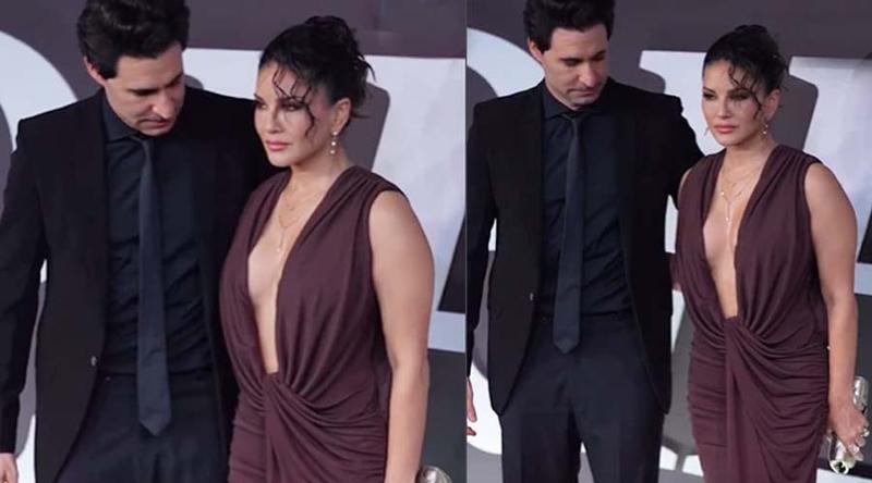সোমবার রাতে স্বামীর হাত ধরেই অনুষ্ঠানস্থলে ঢোকেন। অভিনেত্রীর পরনে ছিল বাদামি রঙের গাউন। সেই গাউনের বেশ কিছুটা অংশ আলগা হয়ে উন্মোচিত হয়ে পড়ে। যার ফলে শরীরের বেশ কিছুটা অংশ উন্মক্ত হয়ে যায়। ক্যামেরার সামনে বুকের একটা অংশ উন্মুক্ত হয়ে যেতেই সঙ্গে সঙ্গে স্ত্রীকে সর্তক করেন ড্যানিয়েল। ক্যামেরায় পোজ় দেওয়ার আগে সানিকে আড়াল করে দাঁড়িয়ে পড়েন তিনি। লাল গালিচায় পোশাক ঠিক করেন অভিনেত্রী। তার পর ক্যামেরার সামনে হাসিমুখে পোজ় দেন।