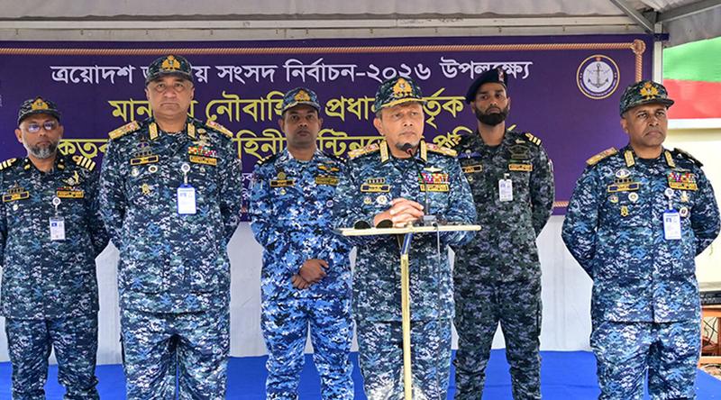 নৌবাহিনী প্রধান বলেন, নির্বাচন শান্তিপূর্ণ, নিরপেক্ষ ও সুষ্ঠুভাবে সম্পন্ন করতে আন্তঃপ্রাতিষ্ঠানিক সমন্বয় বাড়ানো এবং ভোটারদের জন্য ভয়মুক্ত পরিবেশ নিশ্চিত করতে হবে।