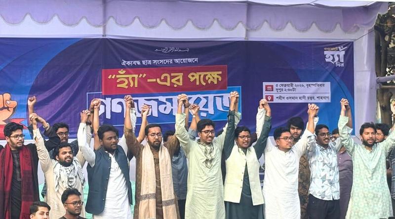 গণভোটে ‘হ্যাঁ’-এর পক্ষে শাহবাগে পাঁচ ছাত্র সংসদের গণজমায়েত