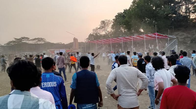 পরবর্তীতে বিকেল সোয়া পাঁচটার দিকে মাঠের উত্তর-পশ্চিম দিকে বাংলা বিভাগের শিক্ষার্থীরা অবস্থান করছিলেন। এরইমধ্যে বাংলা বিভাগের শিক্ষার্থীদের পক্ষ থেকে স্লেজিং করা হলে মাঠে থাকা বিপক্ষের খেলোয়াড়ের সঙ্গে প্রথমে বাগবিতণ্ডা হয়। এ নিয়ে উভয় বিভাগের খেলোয়াড় ও শিক্ষার্থীদের মধ্যে সংঘর্ষ বেধে যায়। উভয়পক্ষের মধ্যে দুই দফায় প্রায় ঘণ্টাব্যাপী সংঘর্ষ চলে। পরবর্তীতে প্রক্টরিয়াল বডির সদস্যরা এসে পরিস্থিতি নিয়ন্ত্রণে আনেন।