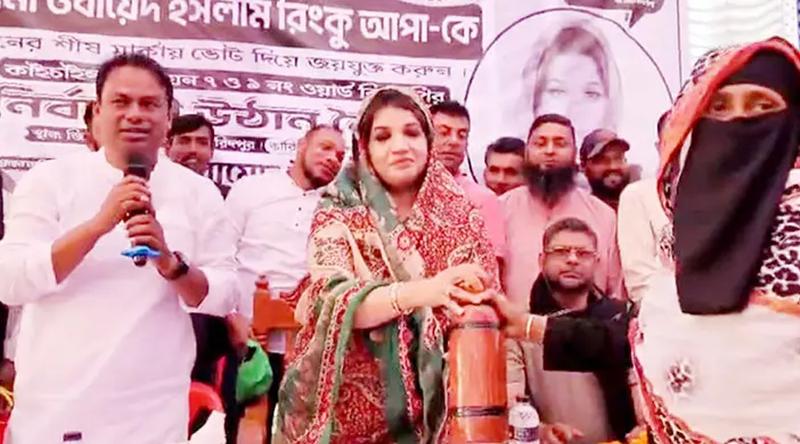 বৃহস্পতিবার (৫ ফেব্রুয়ারি) বিকেলে নগরকান্দা উপজেলার কাইচাইল ইউনিয়নের দিয়াকুলী গ্রামে নির্বাচনি উঠান বৈঠকে এ ঘটনা ঘটে। বৈঠকের শুরুতেই স্থানীয় নারী ভোটার হালিমা বেগম শামা ওবায়েদের হাতে একটি মাটির ব্যাংক তুলে দেন।