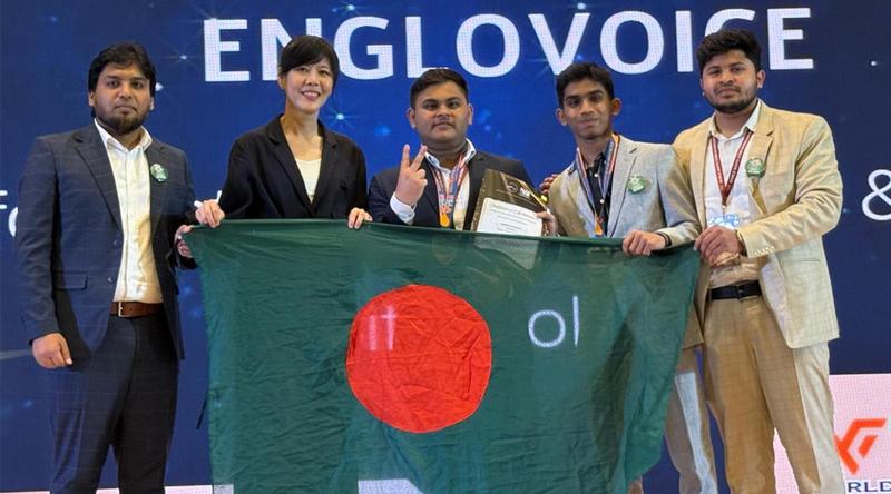 থাইল্যান্ডের রাজধানী ব্যাংককে গত ১ ফেব্রুয়ারি অনুষ্ঠিত বিশ্বের অন্যতম মর্যাদাপূর্ণ আন্তর্জাতিক উদ্ভাবনী প্রতিযোগিতা World STEM Invention & Innovation 2026 (WYSII 2026)-এ ইতিহাস গড়েছে বাংলাদেশ। এই প্রতিযোগিতায় বাংলাদেশের তরুণ উদ্ভাবকদের দল ‘Team EngloVoice’ তাদের অসাধারণ মেধার স্বাক্ষর রেখে স্বর্ণপদক (Gold Medal), MYSO Special Award এবং Best Poster Award—এই তিনটি সম্মাননা অর্জন করে আন্তর্জাতিক অঙ্গনে দেশের মুখ উজ্জ্বল করেছে।