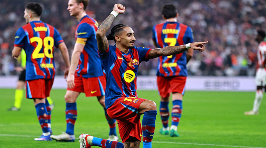 শনিবার মায়োর্কাকে ৩-০ গোলে হারিয়ে লা লিগার পয়েন্ট তালিকার শীর্ষে চার পয়েন্টের ব্যবধান তৈরি করেছে বার্সেলোনা। ম্যাচে লামিন ইয়ামাল একটি নিশ্চিত গোলের সুযোগ মিস করার পর পেনাল্টি এরিয়ার বাইরে থেকে তার ট্রেডমার্ক কার্লিং শটে গোল করে সেই ভুল পুষিয়ে দিয়েছেন।
