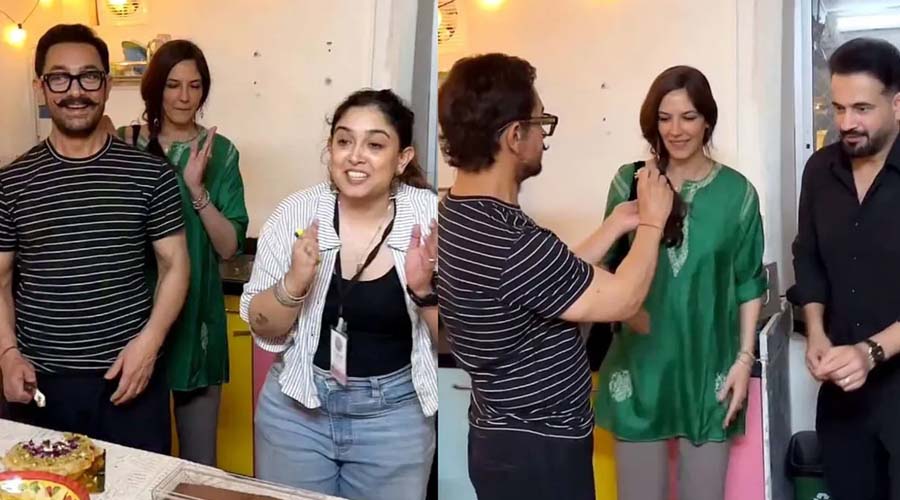 এক ভিডিওতে দেখা যায়, আমির কেক কাটার পর বান্ধবী গৌরীর মুখে কেকের টুকরো তুলে দিচ্ছেন। এ সময় তার দুই সাবেক স্ত্রী কিরণ রাও এবং রীনা দত্তকেও বেশ খোশমেজাজে দেখা গেছে। এমনকি অনুষ্ঠান শেষে কিরণ রাওকে আমির ও গৌরীর সঙ্গে একই গাড়িতে চড়ে বিদায় নিতেও দেখা যায়।