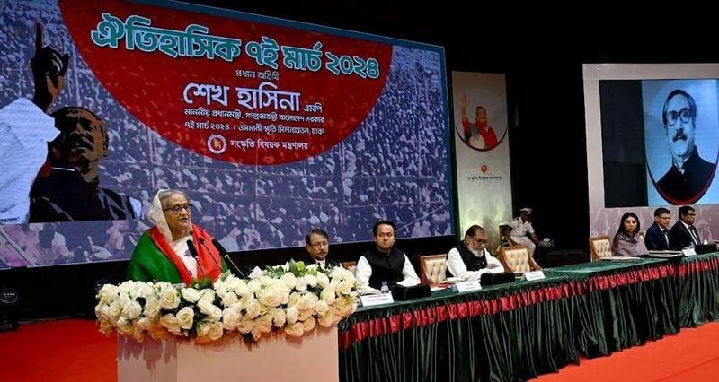 আজ বৃহস্পতিবার (৭ মার্চ) দুপুরে ওসমানী স্মৃতি মিলনায়তনে ঐতিহাসিক ৭ মার্চ উপলক্ষে আয়োজিত অনুষ্ঠানে শেখ হাসিনা এসব কথা বলেন।