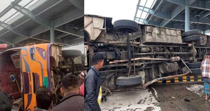 নোমান শিকদার জানান, বরগুনা থেকে ঢাকাগামী বেপরোয়া গতির ইমরান ট্রাভেলস নামের একটি বেস ঘটনাস্থলে এসে নিয়ন্ত্রণ হারিয়ে মহাসড়কে উল্টে যায়।