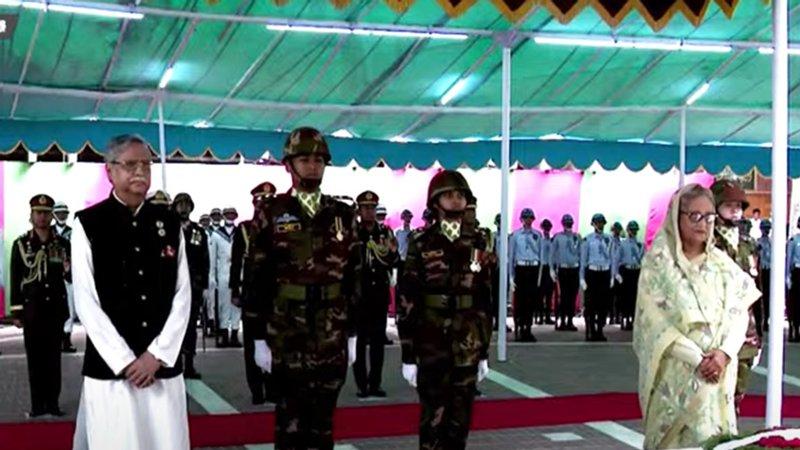 গোপালগঞ্জের টুঙ্গিপাড়ায় বঙ্গবন্ধুর সমাধিতে শ্রদ্ধা জানিয়েছেন রাষ্ট্রপতি মো. সাহাবুদ্দিন ও প্রধানমন্ত্রী শেখ হাসিনা। রোববার (১৭ মার্চ) সকাল সাড়ে ১০টার পর প্রথমে রাষ্ট্রপতি ও পরে প্রধানমন্ত্রী পুষ্পস্তবক অর্পণের মাধ্যমে এ শ্রদ্ধা জানান। এরপর তারা কিছুক্ষণ নীরবে দাঁড়িয়ে থাকেন। এ সময় সশস্ত্র বাহিনীর একটি চৌকস দল সশস্ত্র সালাম জানায়।